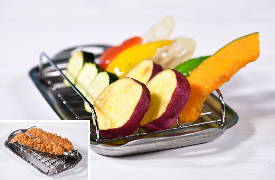 と食材によって使い分けることが出来ます。揚げたもの同士が重ならないようにできるため、油切りの効率がアップします。
