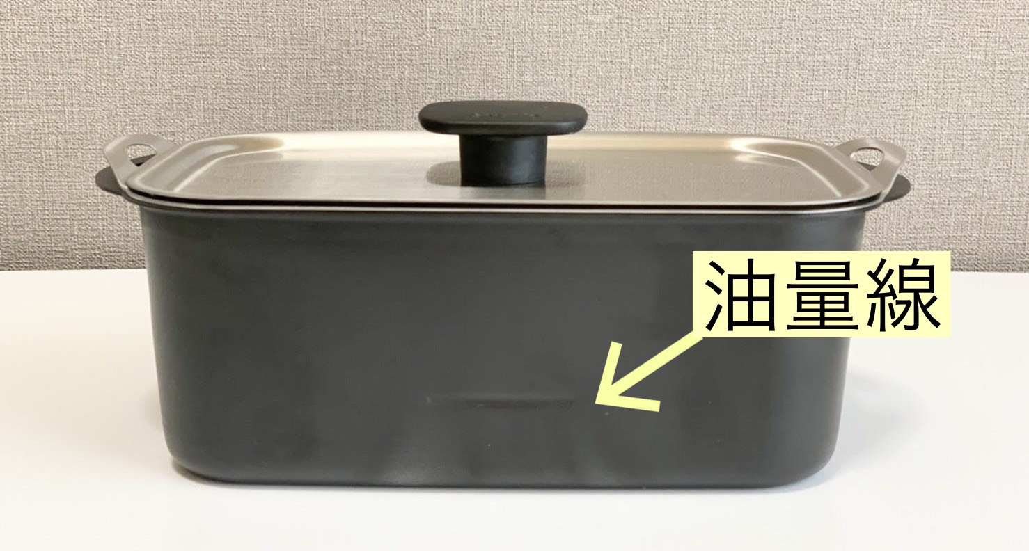 安全に美味しく揚げるために、入れる油の限界ラインがわかりやすくなっています。