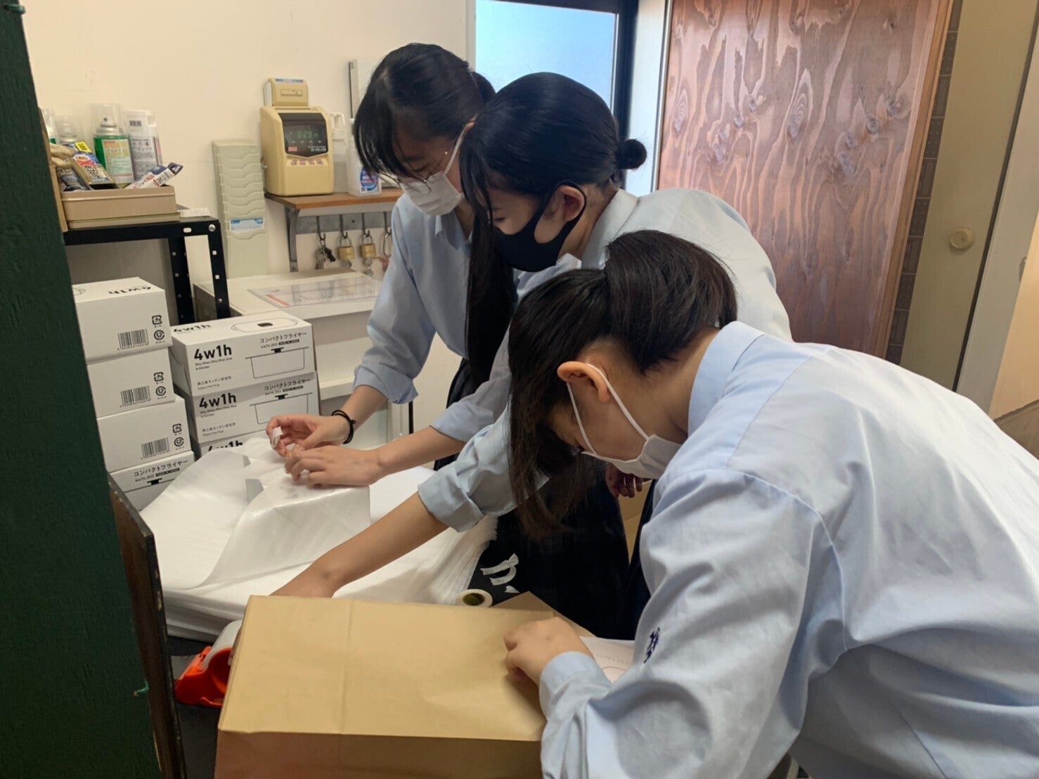 昨日、一緒に活動している燕中等教育学校の生徒と商品の梱包・発送作業を行いました。