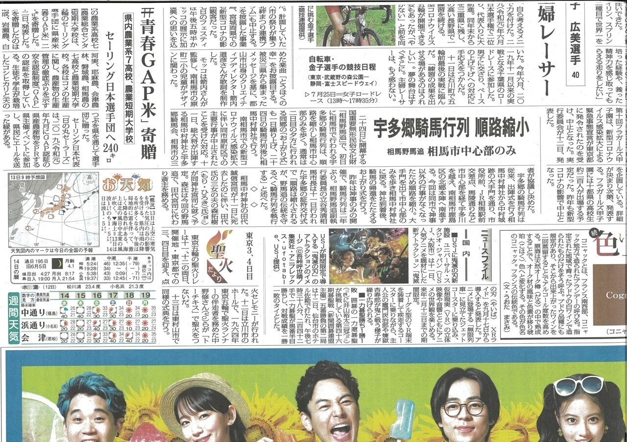 私どものクラウドファンディング終了まで残り10日となりました。昨日証符・役旗・肩証交付式の報告をさせていただきました。画像の通り地元紙に記事として掲載されております。その中の報道にもあります通り、当中村神社田代宮司が開式の2時間前にご逝去されました。皆様にご報告させていただくか否か一同悩みましたが、ご支援くださった方々にお知らせすることが礼と思い、ここに慎んでご報告させていただきます。ご支援のおかげで現在神輿殿の修復に着手しており、故田代宮司も復旧の速さに大変喜んでいた矢先の事でした。亡き田代宮司も神楽殿の修復までを切望しており達成までもう一歩です。改めてご支援を宜しくお願いいたします。野馬追の運行スケジュールも決定し、24日に奏上祭・安全祈願祭・出陣式・市内お行列・お上がり式まで宇多郷においての行事は駈足ながら全て執り行います。疫病の広がりで他郷が出陣できない無念を晴らし、地域の安寧と発展、疫病退散を祈願し宇多郷騎馬は威風堂々の出陣を果たします。