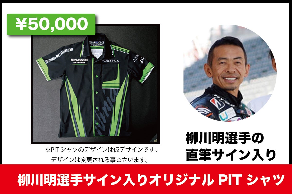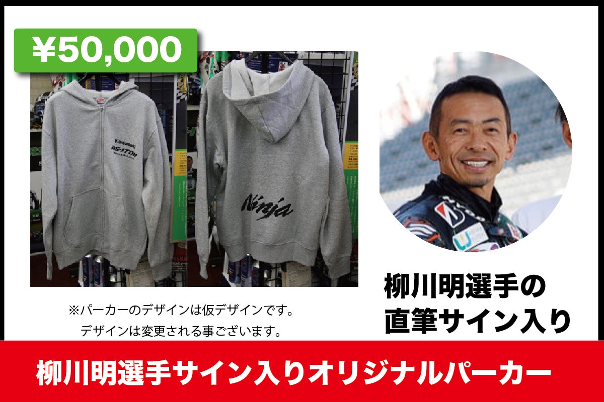 ・レースウィークにライダーやピットスタッフが着ているRS-ITOHのオリジナパーカーに、KAWASAKIのレジェンドライダー「柳川明」が直筆で1枚1枚サインをします。※パーカーサイズは、M・L・XLをご用意しております。*ご支援をレース参戦のために大切に使わせていただきます。
