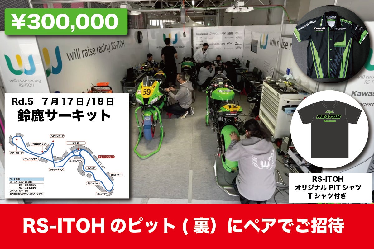 【RS-ITOHスペシャルサポーター 7/17,18鈴鹿サーキット RS-ITOH ピットへペアでご招待】
