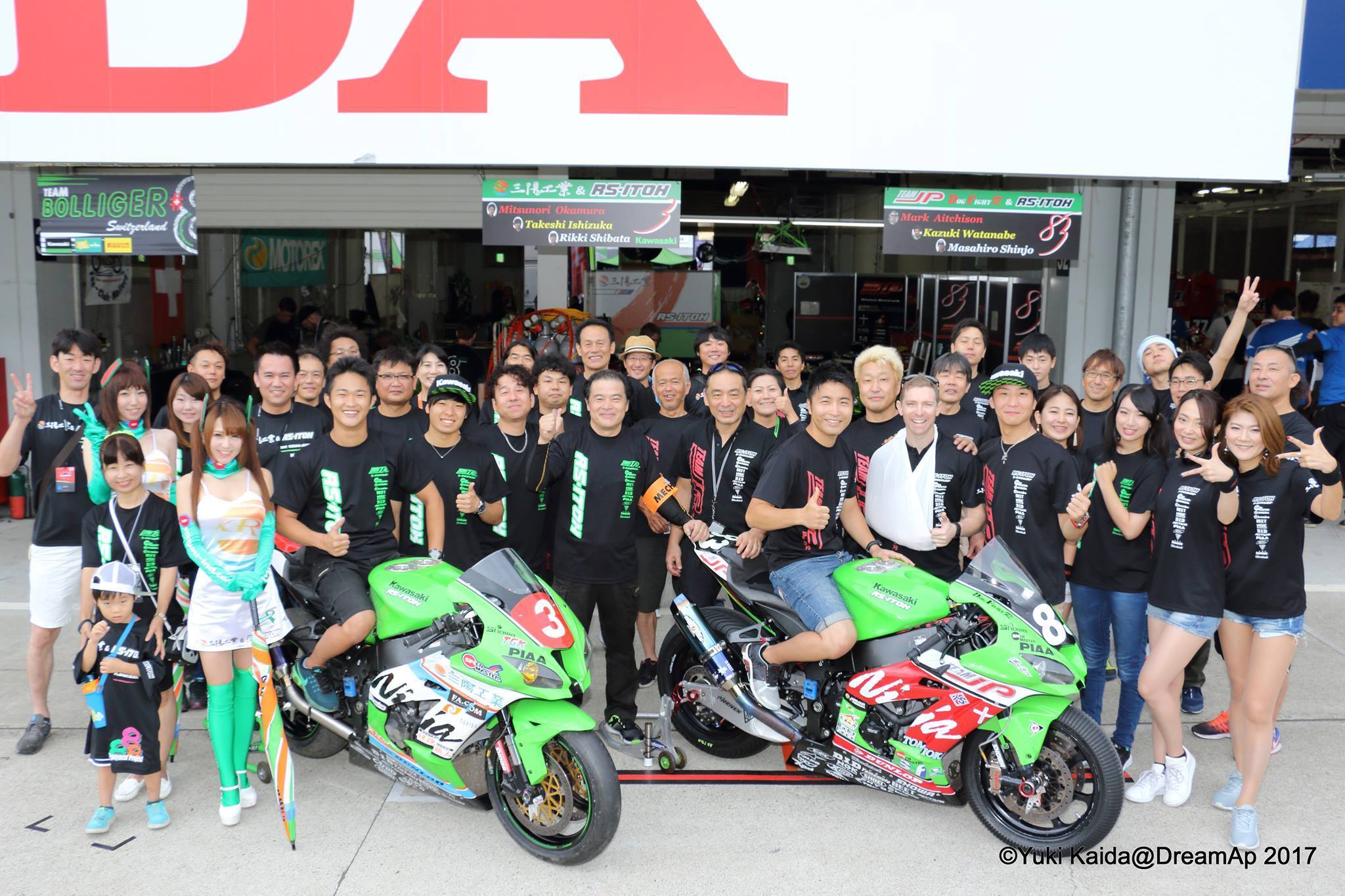 私たち「RS-ITOH」は国内最高峰のオートバイレース「全日本ロードレース選手権」のトップカテゴリー「JSB1000」、「鈴鹿八耐」に27年連続でカワサキ車輌で参戦しております。