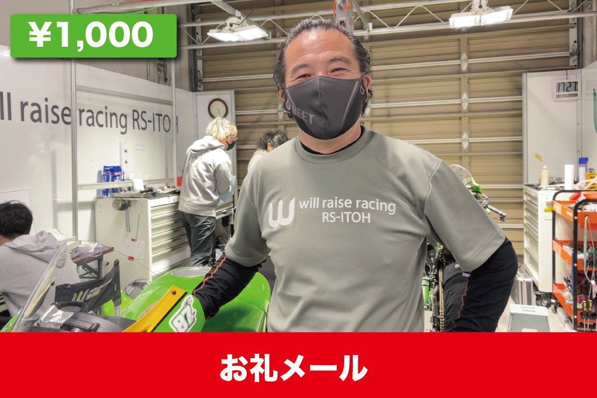 このコースは純粋なご支援のお願いです。ご支援頂いた皆さまには、年間レース終了後に、RS-ITOHよりお礼のメールを心を込めてお送りさせていただきます。