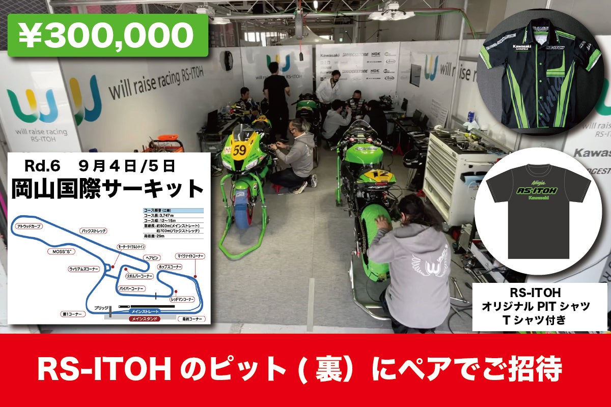 【RS-ITOHスペシャルサポーター 9/4,5 岡山国際サーキット RS-ITOH ピットへペアでご招待】