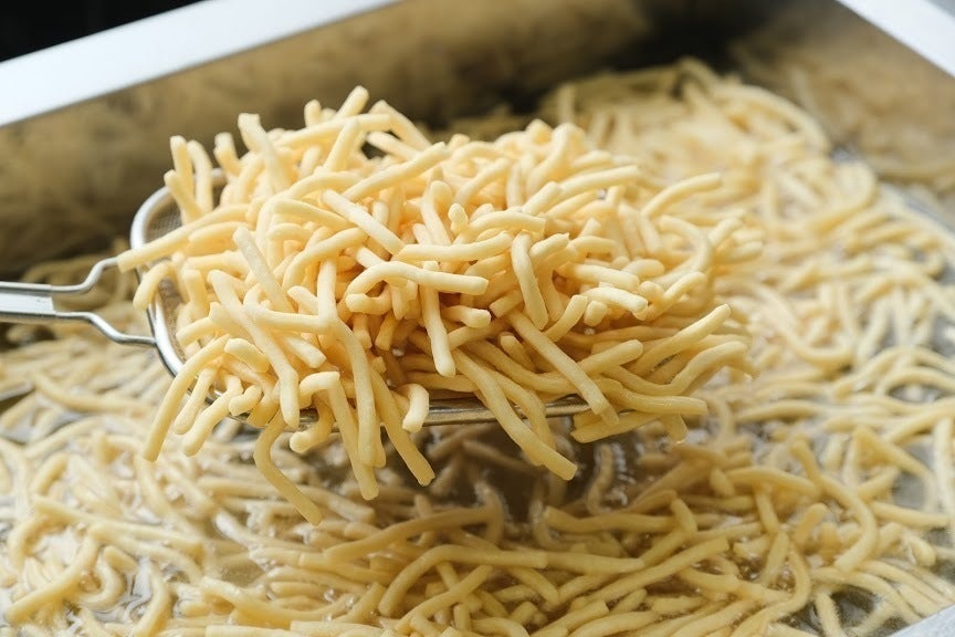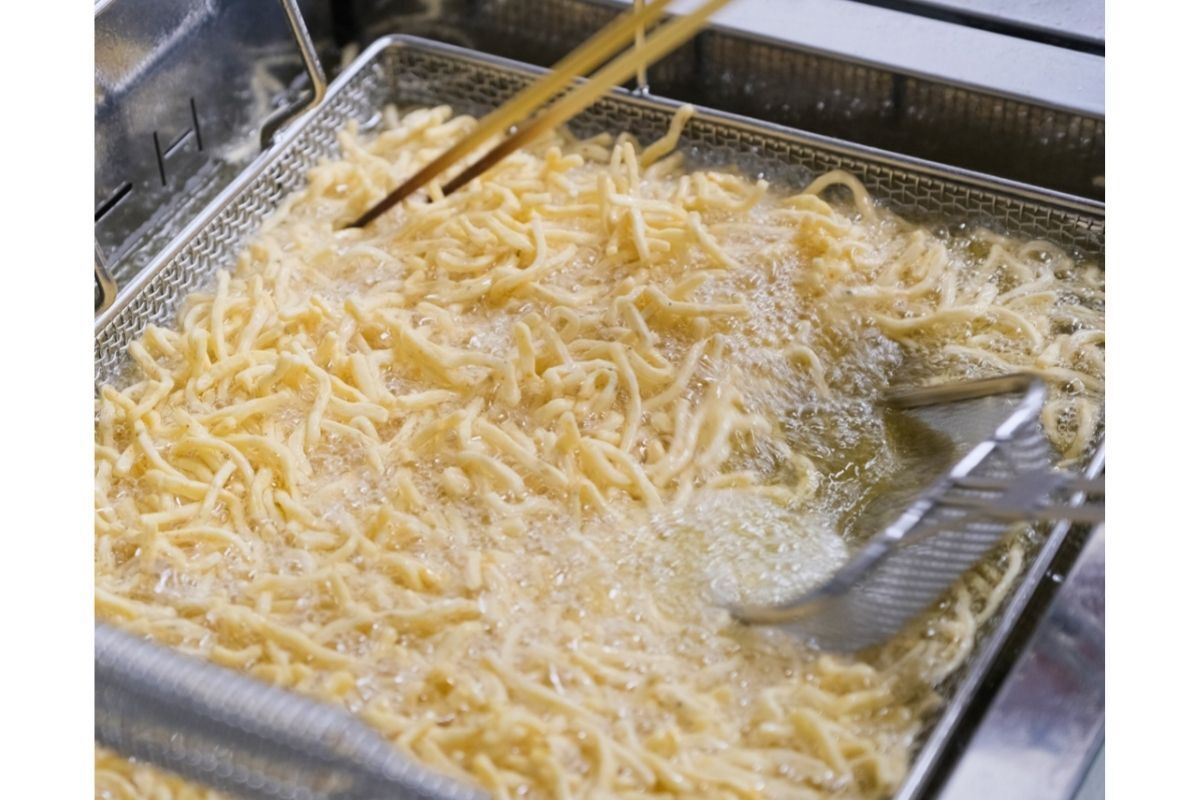 カフェメニューで手作りのうどんをお出ししていた中、うどんを揚げるタイミングがあり、パリッとした食感や塩味がちょうど良く「これはイケる!」と、それをお客様にお出しすることにしました。