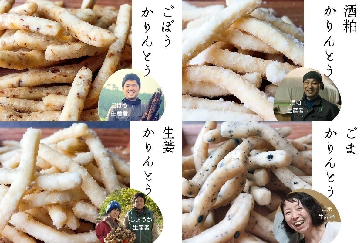 酒蔵の酒粕かりんとうを作る中、地元生産者さんとのご縁を頂くことが増え、生産者と協力して色々な食材でかりんとうを作ることになっていったのです。