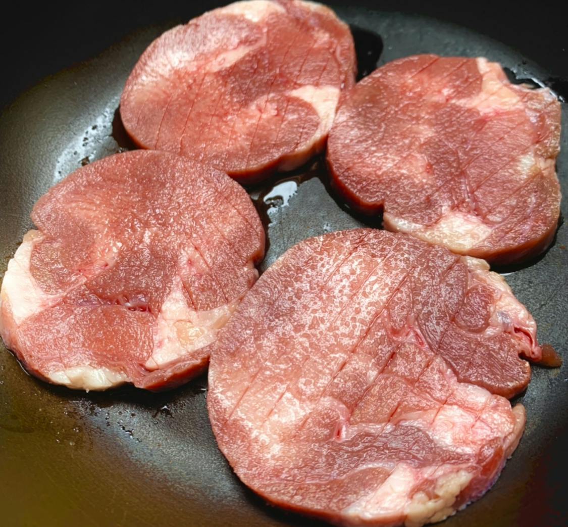 緊急事態宣言以降は、お昼は外食を辞め社内で自炊をしております。久しぶりに撮影で使用した仔牛タンがありましたので焼いて食べようと思ったのですが、サラダ油を切らしておりました。