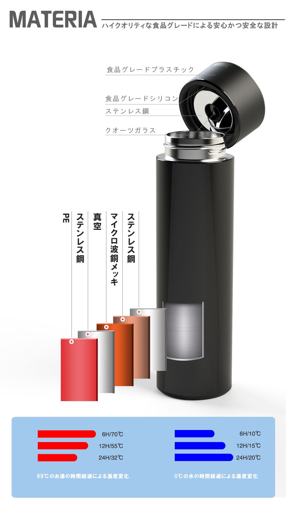 真空管構造のステンレス素材が保温保冷機能を充足させます。