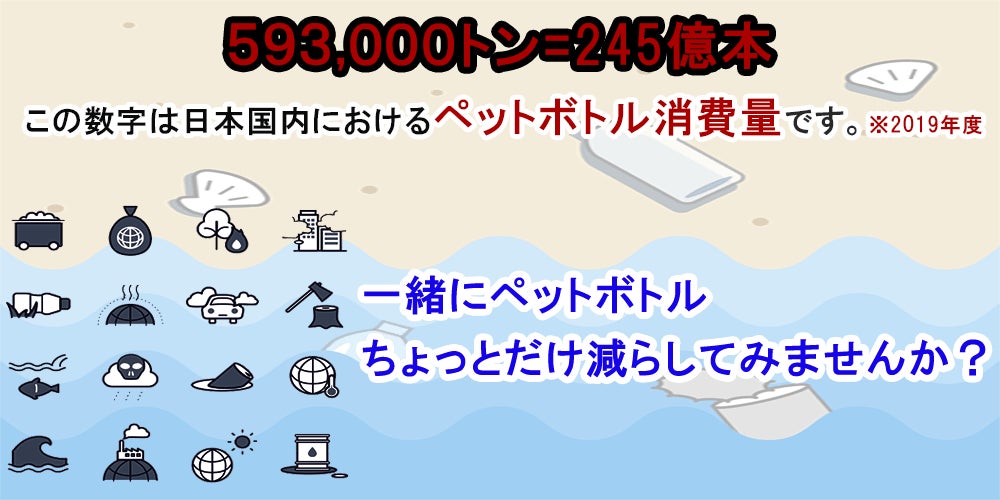 地下水に浸出する可能性のある化学物質も使用されているため地下水に依存する植物や動物にダメージを与えます。また、海洋汚染の原因にもなっており、海や地上の動植物及び私達自身を守るためにもペットボトルの削減は急務な課題となっております。