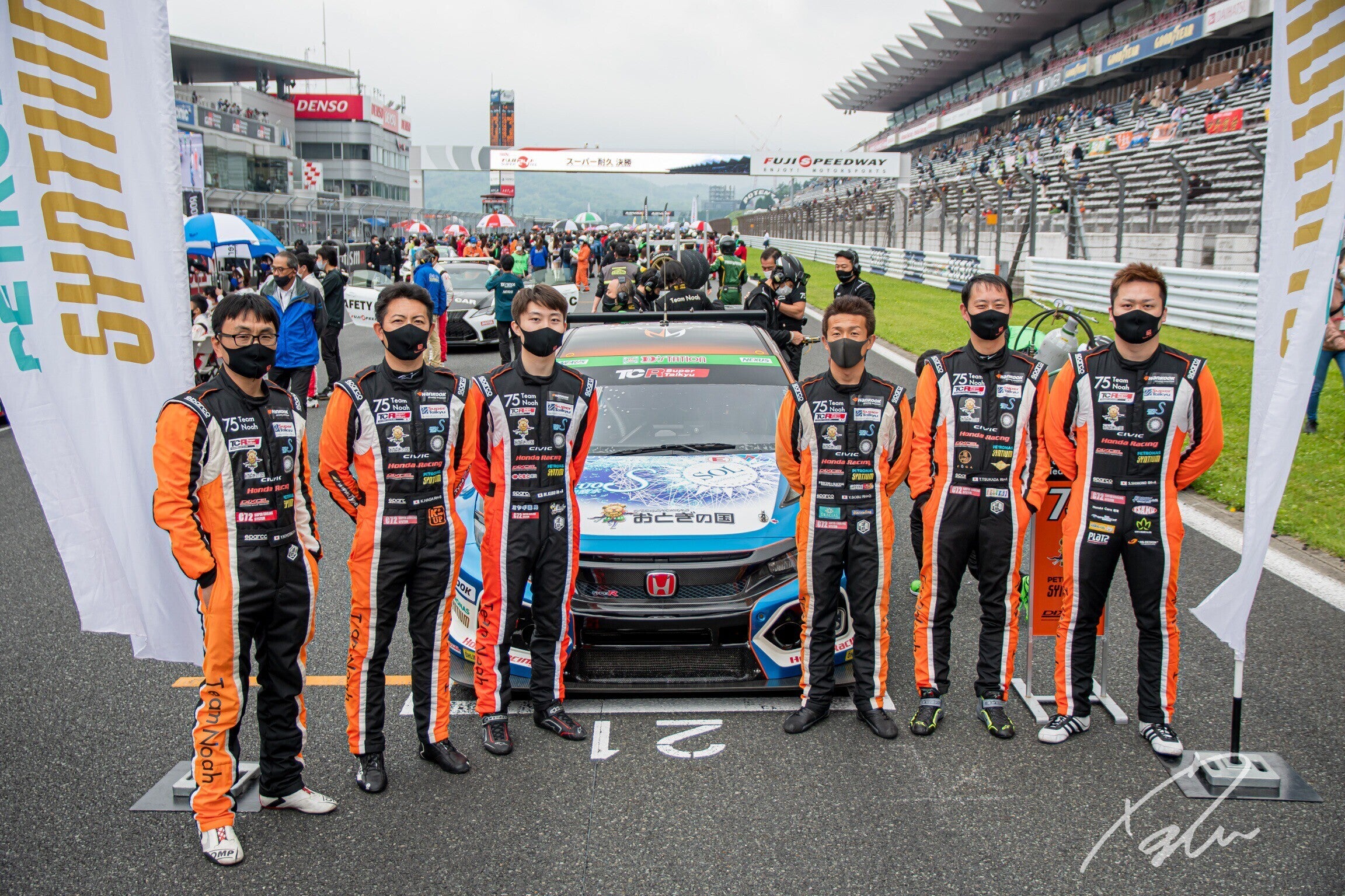 2021スーパー耐久富士24時間レース、無事終了しました!決勝はTCRクラス トップからスタートし、順調に周回していましたが夜中、マシントラブルの為、約3時間のピットイン。メカニックの皆さんの懸命な作業のおかげで再度コースインする事が出来ました。レースは後半トップと53周あった差を13周まで詰めるも、あと少し届かず2位でチェッカーを受けることが出来ました。クラス優勝出来なかった事は悔しいですが、無事チームの皆さんと24時間走りきることが出来て本当に良かったと思います!次戦はTeam Noahのホームコース『オートポリス』で開催されます。私は走れませんが、次戦こそは優勝できるようチームで頑張っていきたいと思います。75号車おとぎの国CIVIC TCRの応援、宜しくお願い致します。