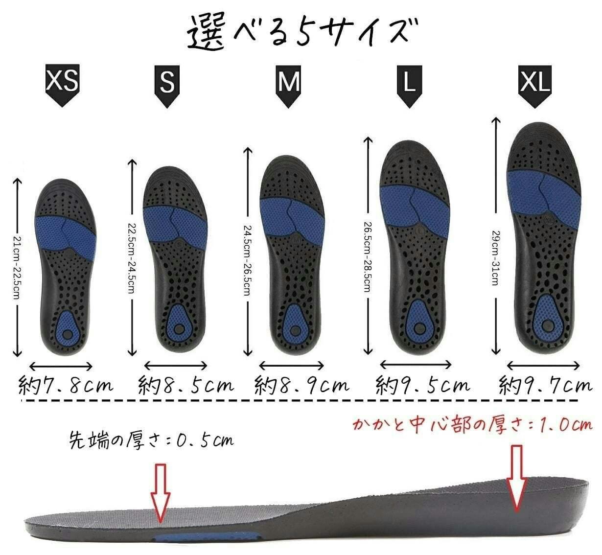 ※S、M、Lサイズは、第一弾インソールより、つま先側の横幅を約4mm、長くしております