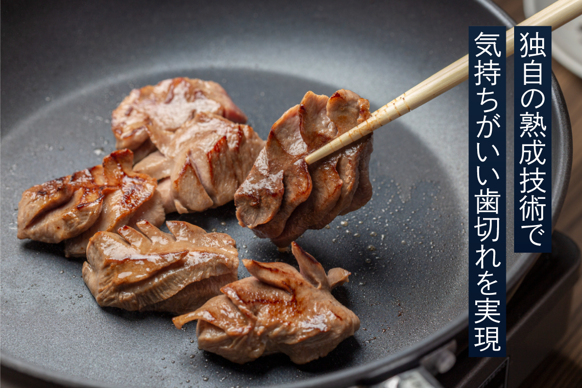 牛たん特有のザクザク食感を楽しめるように、「たん元」と「たん中」と呼ばれる部位のみを豪快な角切りでカットした牛たん。
