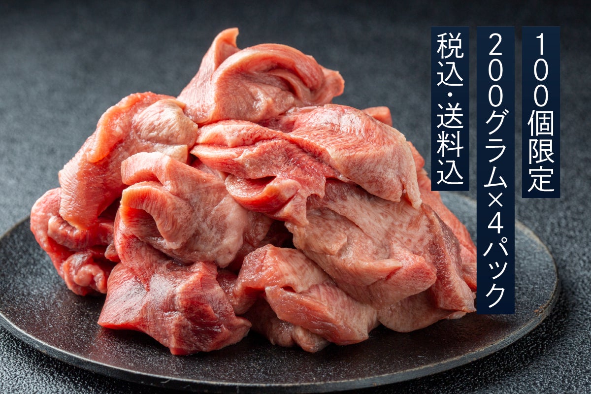 角切り牛たんの素材となった牛は、アメリカの穀物肥育で丁寧に育てられた牛を使用しているため、くさみが無く、角切りカットでもしつこくならないサシ加減が特徴です。