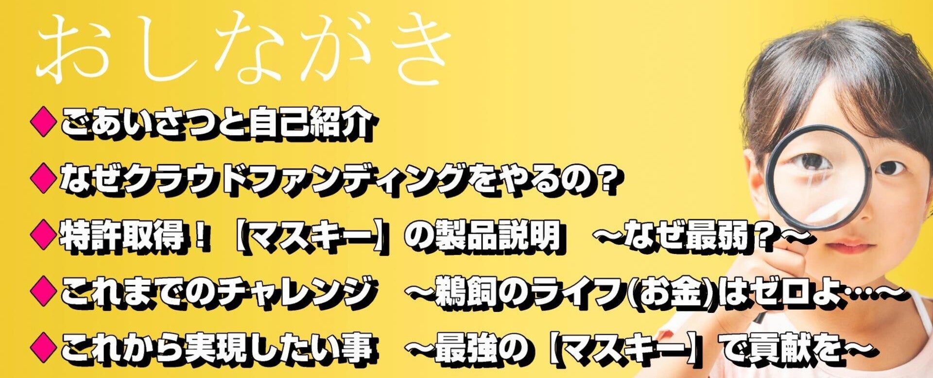 皆様、何卒【マスキー】の再設計費にご支援を頂けませんでしょうか?