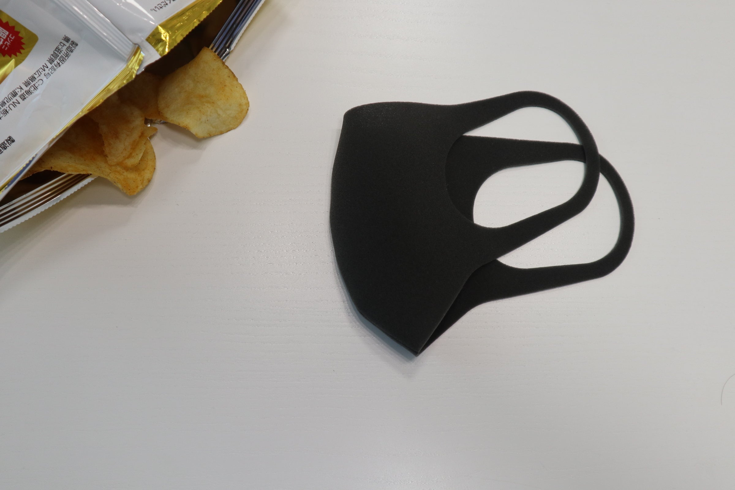 「マスクを机に置いてスプレーをかける」