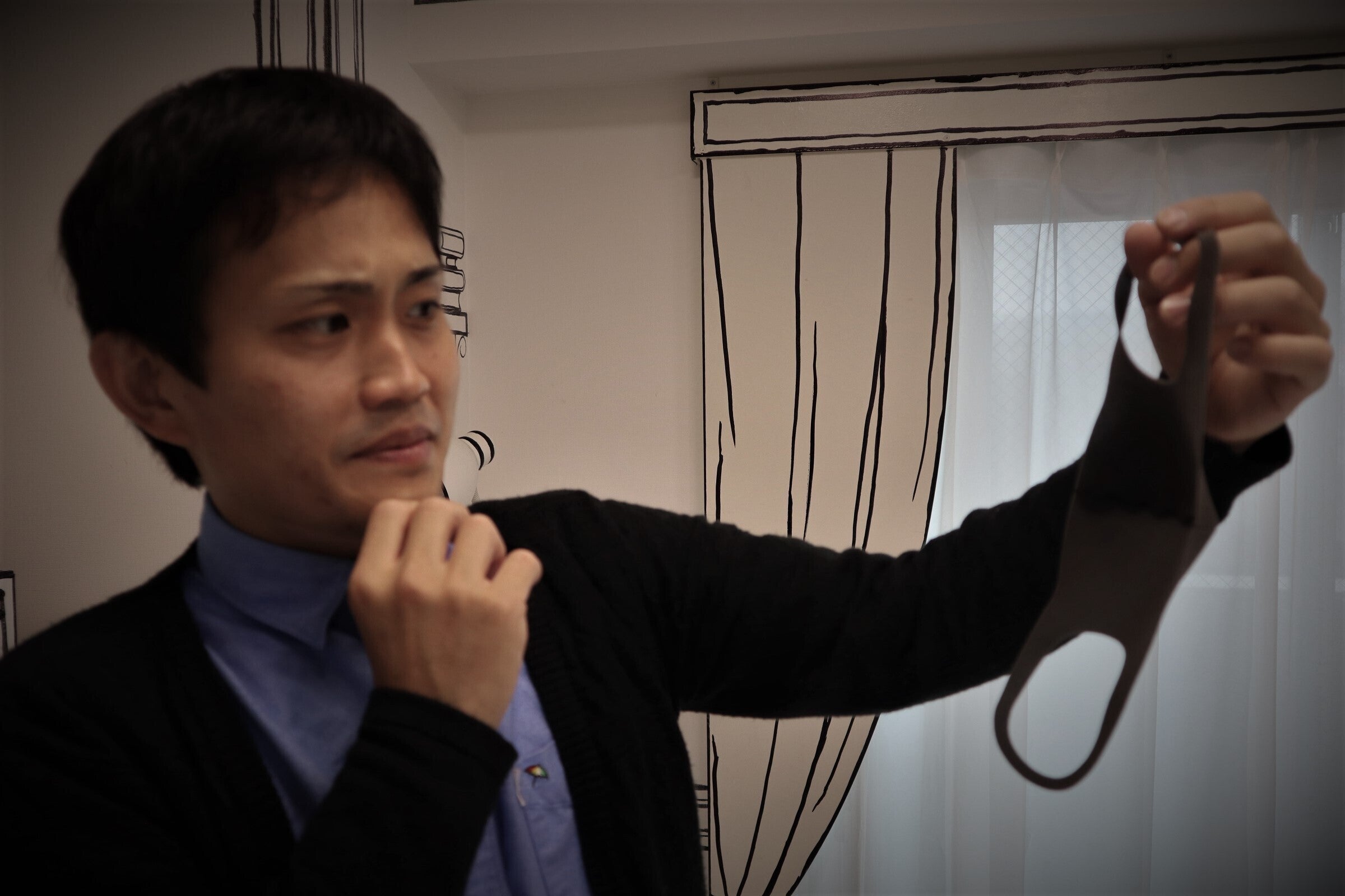 =張力調整ができるので不織布マスクはもちろん、色々な素材やサイズのマスクでも引っ掛けて保管できます。