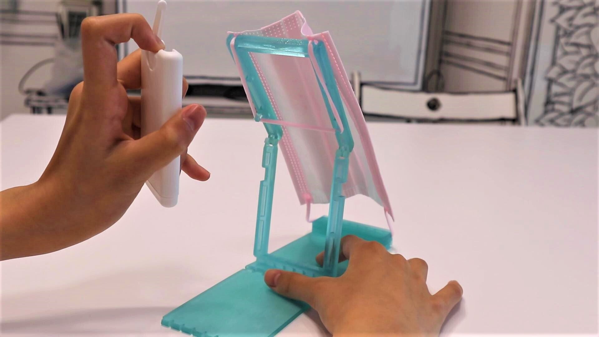【マスキー】は折りたたみ時に保管していたスプレーを効果的にマスクに噴霧・乾燥できます。