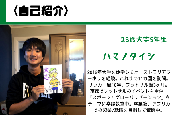 同志社大学4年グローバル地域文化学部に通う濵野大志(ハマノタイシ)です。