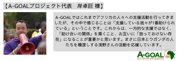 これからの日本とアフリカ、日本とウガンダが繋がる1つのきっかけになりたいと思っています。