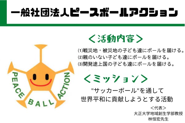 一般社団法人ピースボールアクション協力のもと、サッカーボールを「30球」届けます。