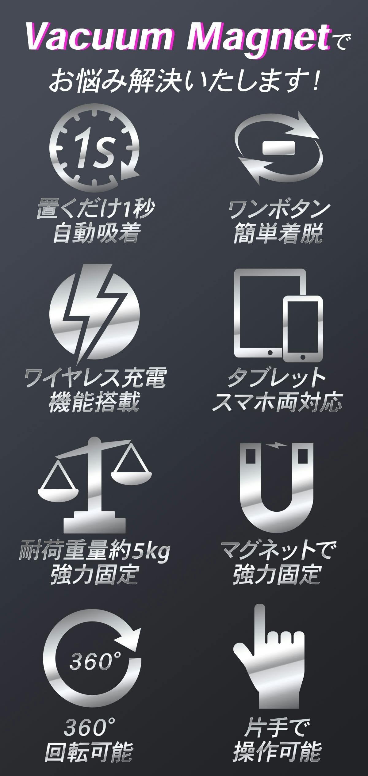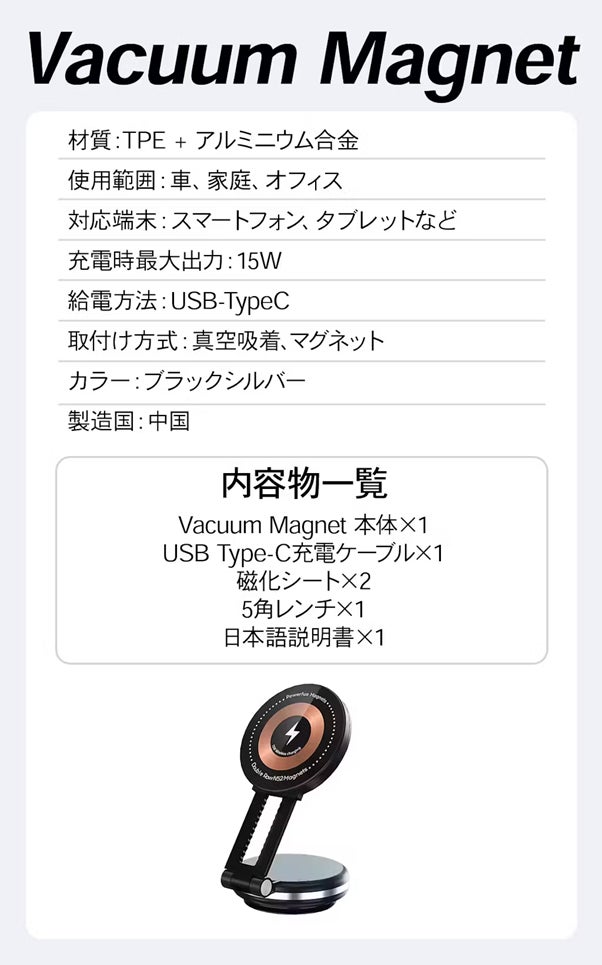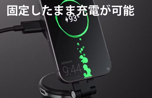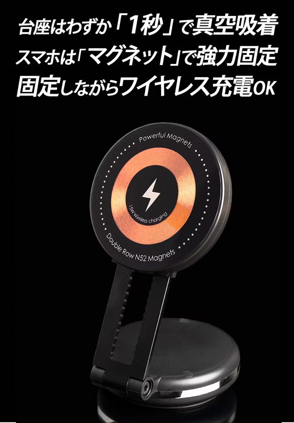 固定したままワイヤレス充電OK!真空&磁気吸着式折りたたみスマホホルダー