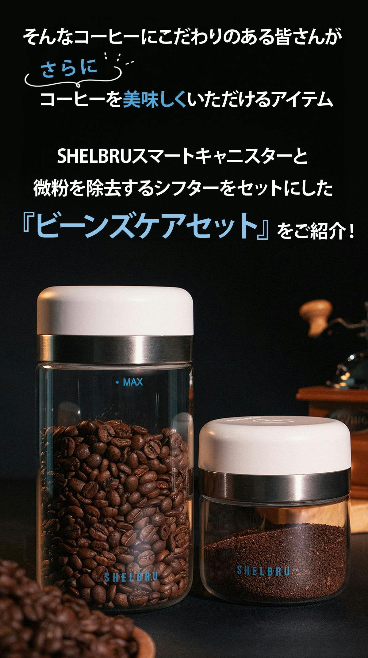 ワンクリックで真空を作る「キャニスター」とコーヒーの微粉を取り除く「シフター」で香り豊かで雑味のないあなた史上最高の味わいのコーヒーに。