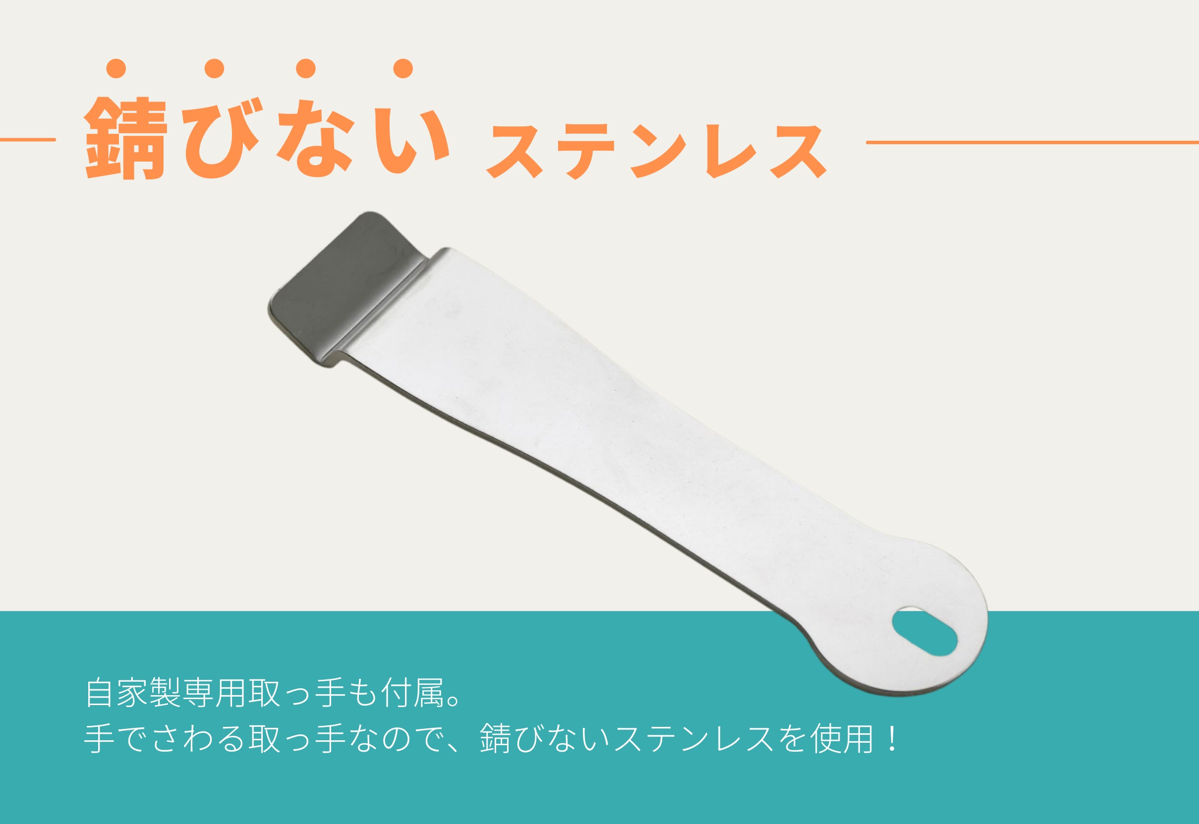 手で触る取っ手としての使用の為、錆びないステンレスを使用。