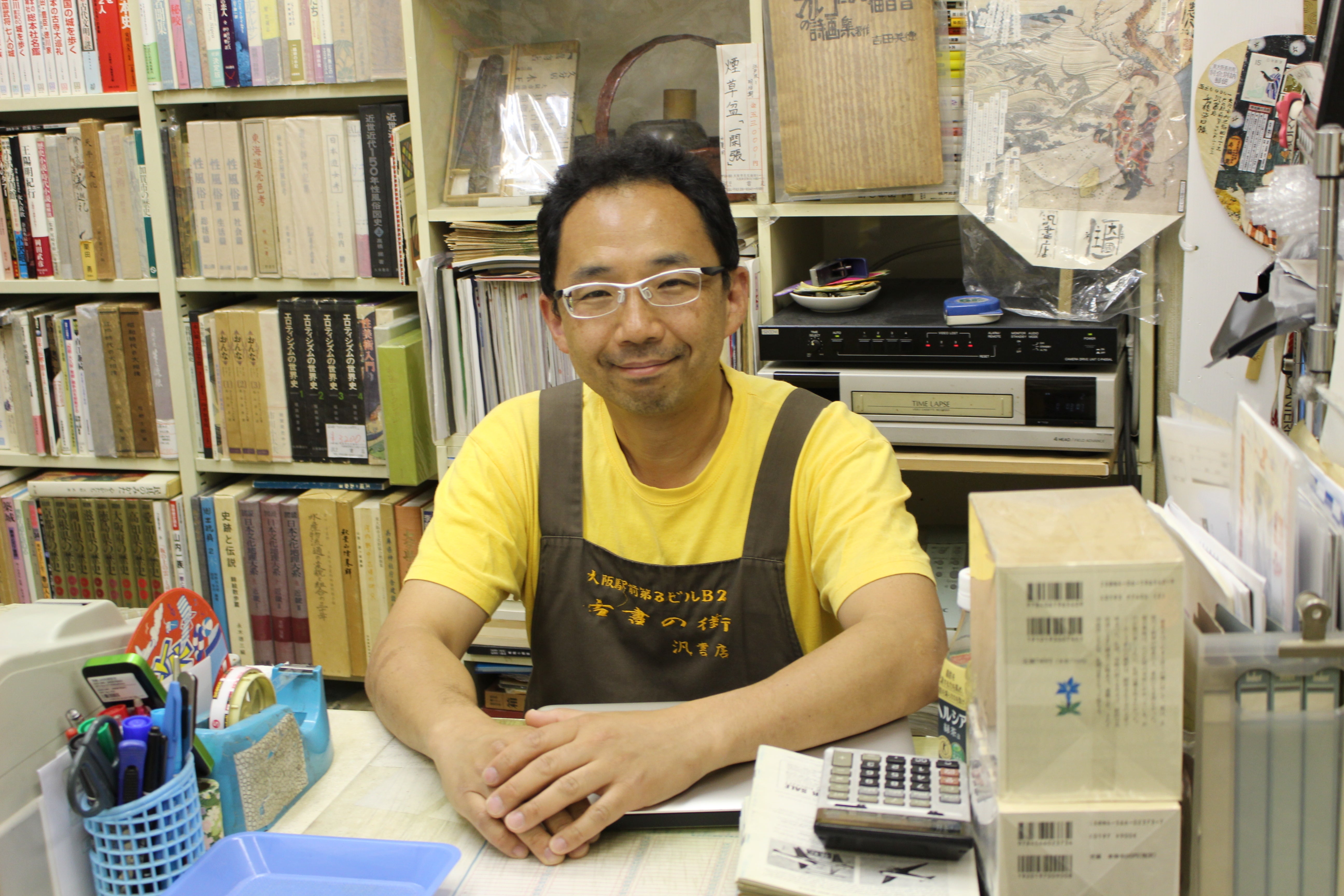 はじめまして。大阪駅前第3ビルで小さな古書店・汎(はん)書店を営んでいる、船橋 栄日(えいひ)と申します。昭和44年生まれ、A型、牡羊座、動物占いは「コアラ」の陽気なオヤジです。大学3年と大学1年の2人の息子と嫁の4人、生かされている事に毎日感謝の家族です。