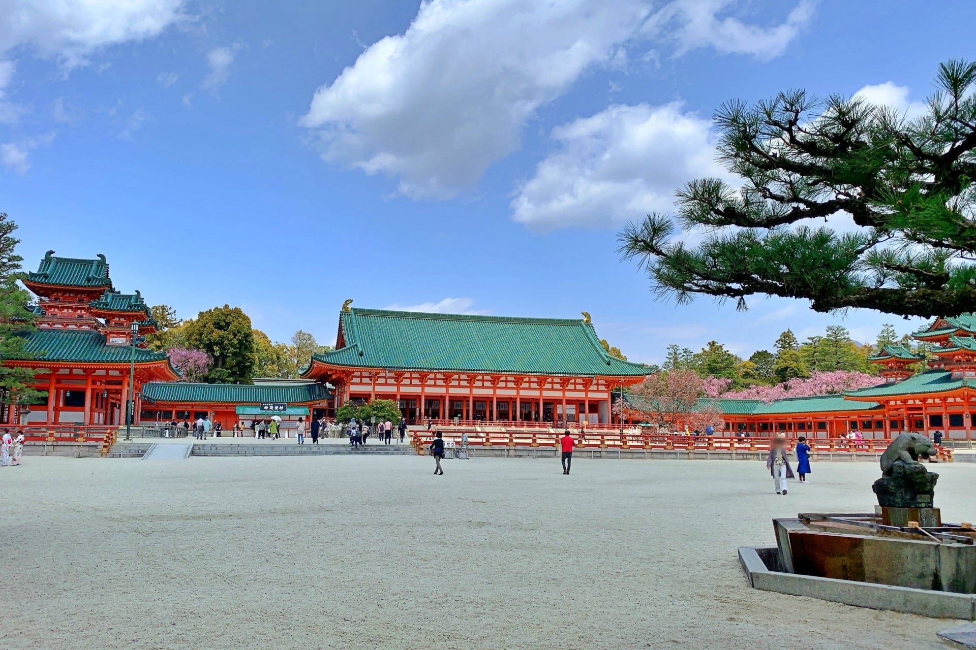 ▶ 高さ24m、幅18mにもおよぶ平安神宮大鳥居
