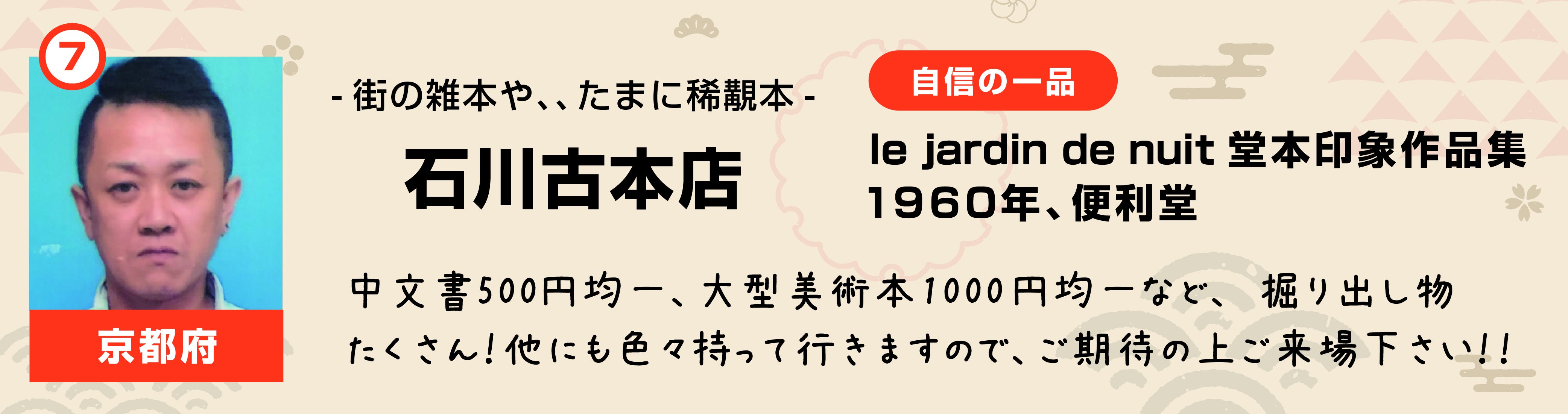 ⑦石川古本店 京都市左京区一乗寺南大丸町95 TEL075-711-5429