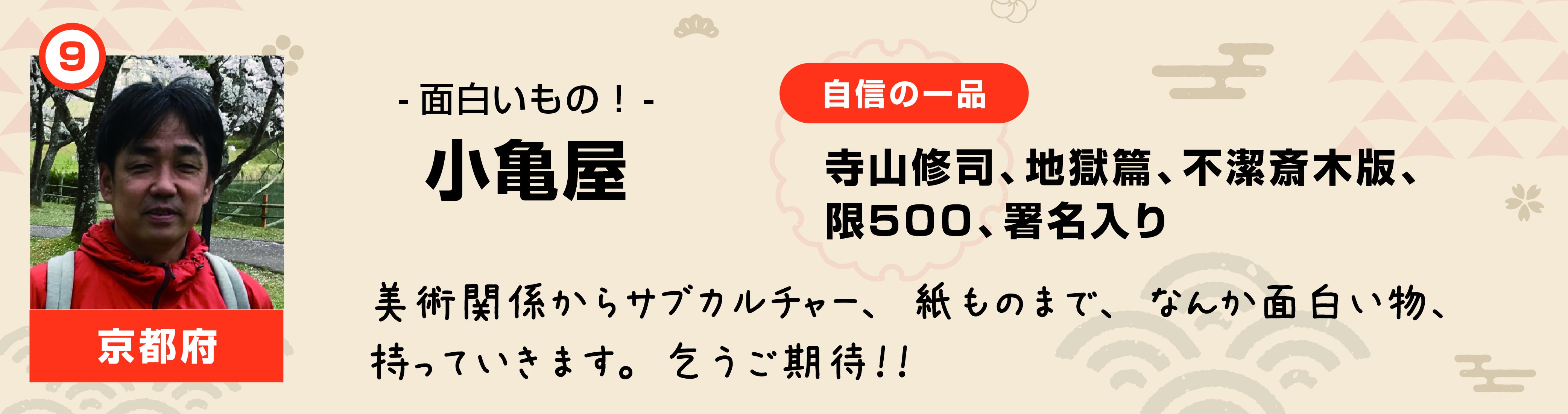 参加各店からは、この度の古本まつりにかける想いや、皆様に伝えたいメッセージが届いています。それを紹介します。ありのままの店主をご紹介していますので、少々クセの強い画像もございます。何卒ご了承くださいませ。