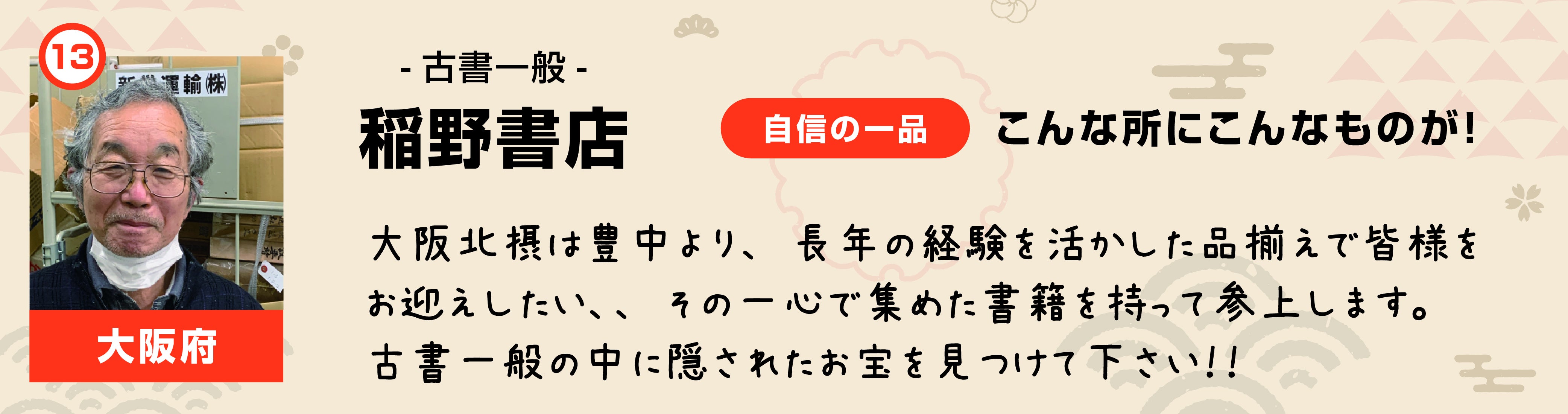 ⑬稲野書店 大阪府豊中市服部西町2-8-7 TEL06-6866-2320