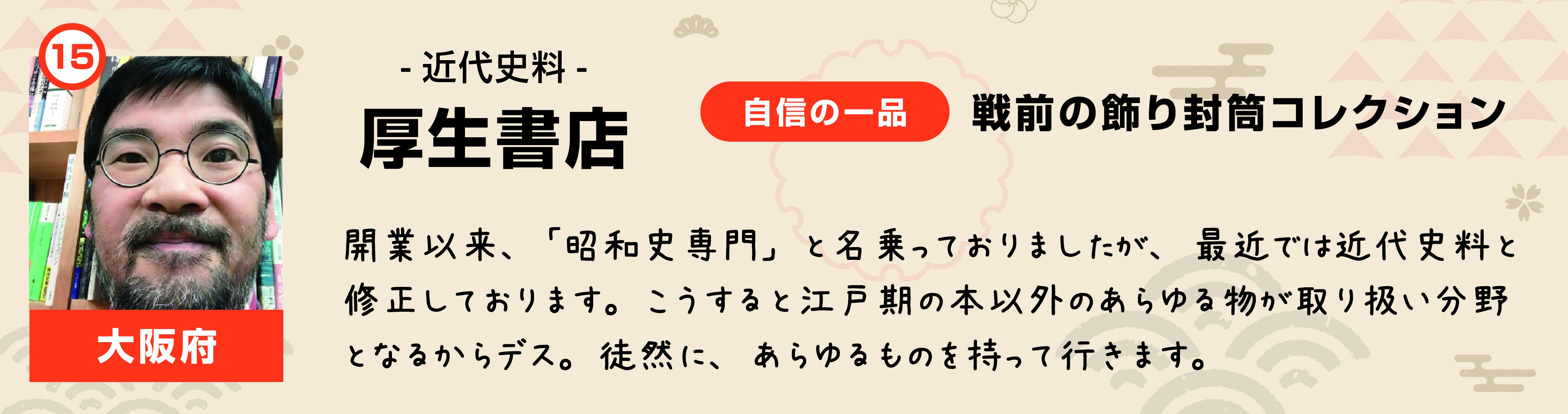 ⑮厚生書店 大阪市中央区谷町6-3-12 TEL06-6773-9360