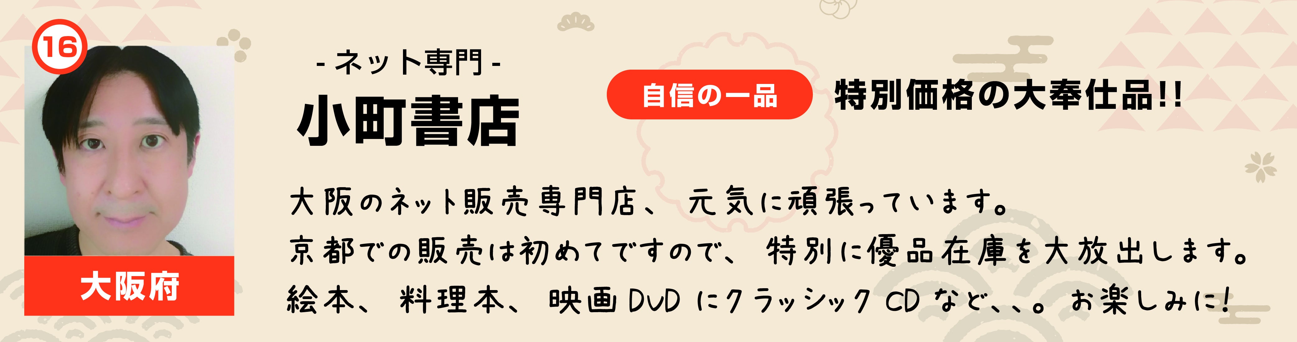 ⑯小町書店 大阪市東淀川区大道南3-6-15 TEL090-3625-0178