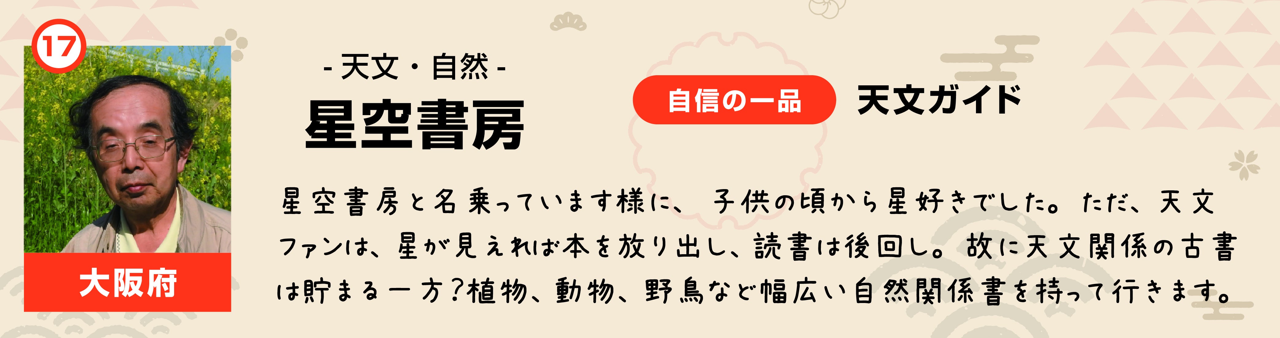 ⑰星空書房 大阪府高槻市津之江町3-3-6 TEL072-696-4210