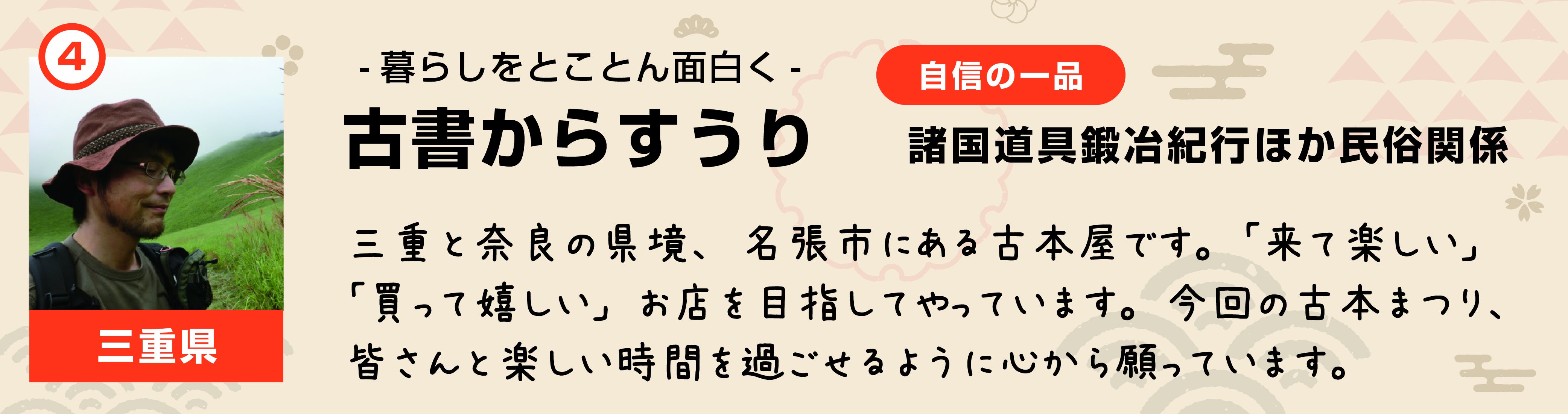 ④古書からすうり 三重県名張市中町363 TEL0595-41-1578