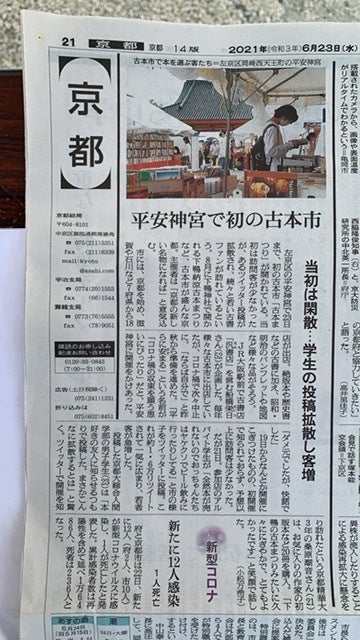 2021/06/26 13:15みんなでつくる古本まつり、無事に終えることが出来ました。支援いただきました皆様には、心より感謝を申し上げます。本当にありがとうございました。開催初日、二日目は緊急事態宣言下、なかなか宣伝もできず、取り上げてももらえず困難を極めましたが、意外なことに、月曜日にアルバイトのツイートした内容がバズり、火曜日は学生中心に押し寄せ盛況に、また、その流れで朝日新聞が取材に来てくれ、最終日の朝刊に載りました。最終日は「新聞見ましたよ〜〜」というお客さんが押し寄せ、先日の勉強熱心な学生たちと合わさり、古本まつりの最終日としてはあり得ない程の盛り上がりを見せました。最後までできることをし、諦めなければ何かを引き寄せられるんやと、心からおもいます。「続けて下さいね」「いい場所で、いい雰囲気で、京都の楽しみが一つ増えました」「久しぶりに楽しい時間をありがとうございました」、、、次々にかけて頂く言葉に、ここに至るまでの苦労した時間が全て報われました。皆さんの熱い思いと、深い気持ちに、心からありがとうの感謝を送ります。会場の撤収も終わり、平安神宮は元の静謐な空間に戻りました。このイベント、クラウドファンディングはどうなるかわかりませんが、「平かに安まる」、、、、心と世界の平安に想いを寄せたイベントとして、来年度から継続して行う予定です。また皆さんにお会いできる日を、心から楽しみにしています。ありがとうございました。汎書店 船橋栄日 もっと見る皆さんを、心からお待ちしていま〜〜す^^ 着々と準備は進んでいます!!