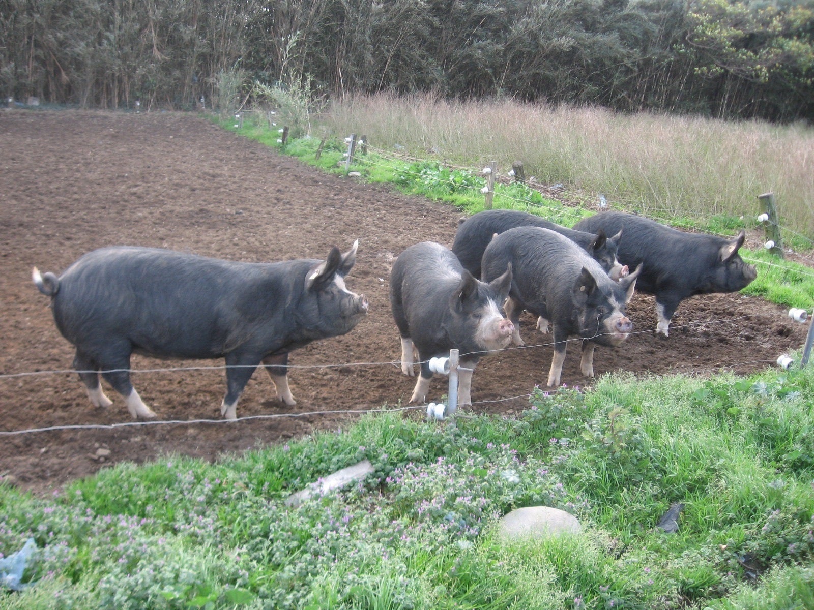 澄んだ空気と水に恵まれた環境で、太陽の光をいっぱいに浴びながら、放牧豚舎でストレスなく育てられる黒豚は、一般的な黒豚より2〜3ヶ月長い期間大切に飼育されます。また「渡辺バークシャー牧場」グループではパンと野菜くずなどを乳酸発酵させた独自開発の手作りのえさにこだわっています。