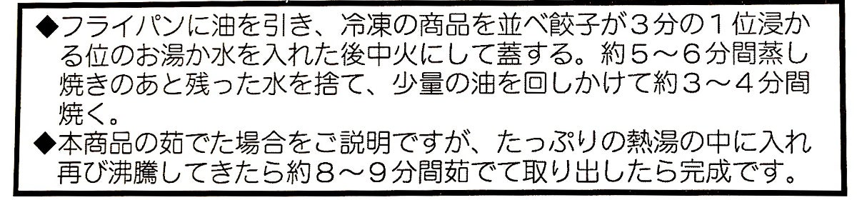 ・肉の味が抜群!黒豚挽肉使用と書かれている一般品とは比べ物にならない。味付けがさっぱりしていて皮がもっちりしているので水餃子にもぴったり(90代)