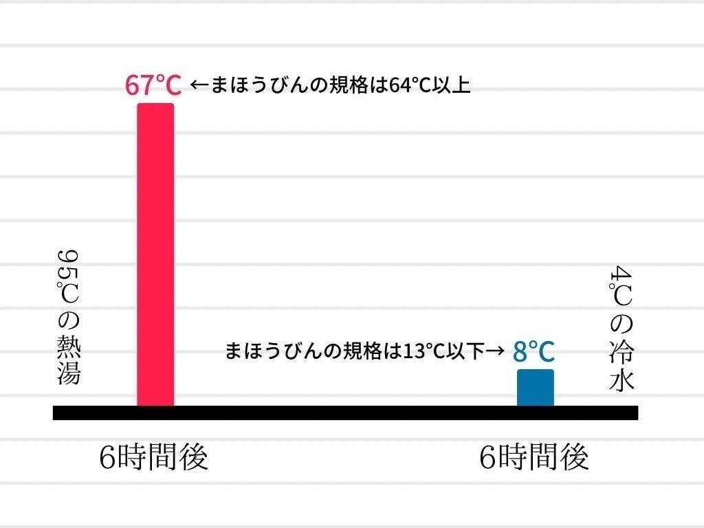 まほうびんとは、内部を二重構造にし真空の隙間を作っている水筒のことで、熱の伝わり方を変える仕組みになっています。
