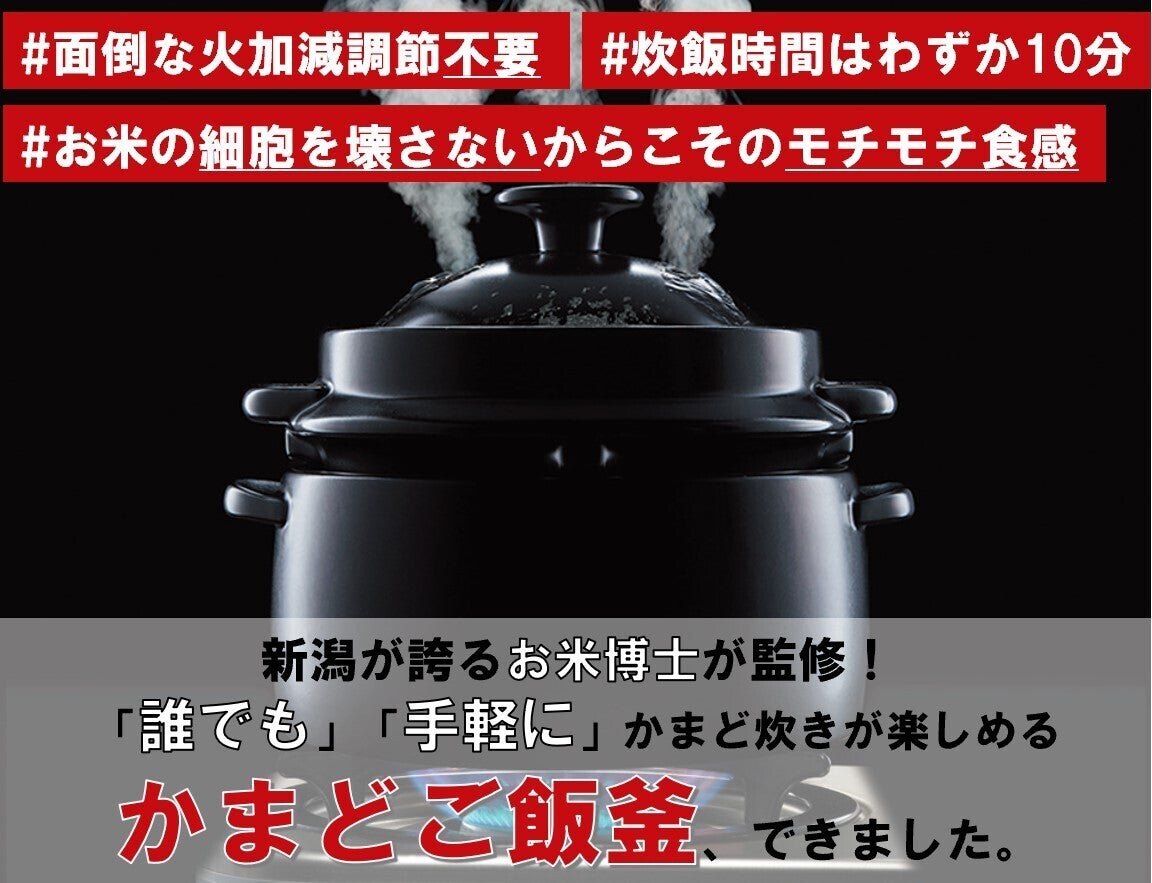 炊飯時間はたったの10分、火加減調節不要で美味しいかまどご飯をお楽しみいただけます!