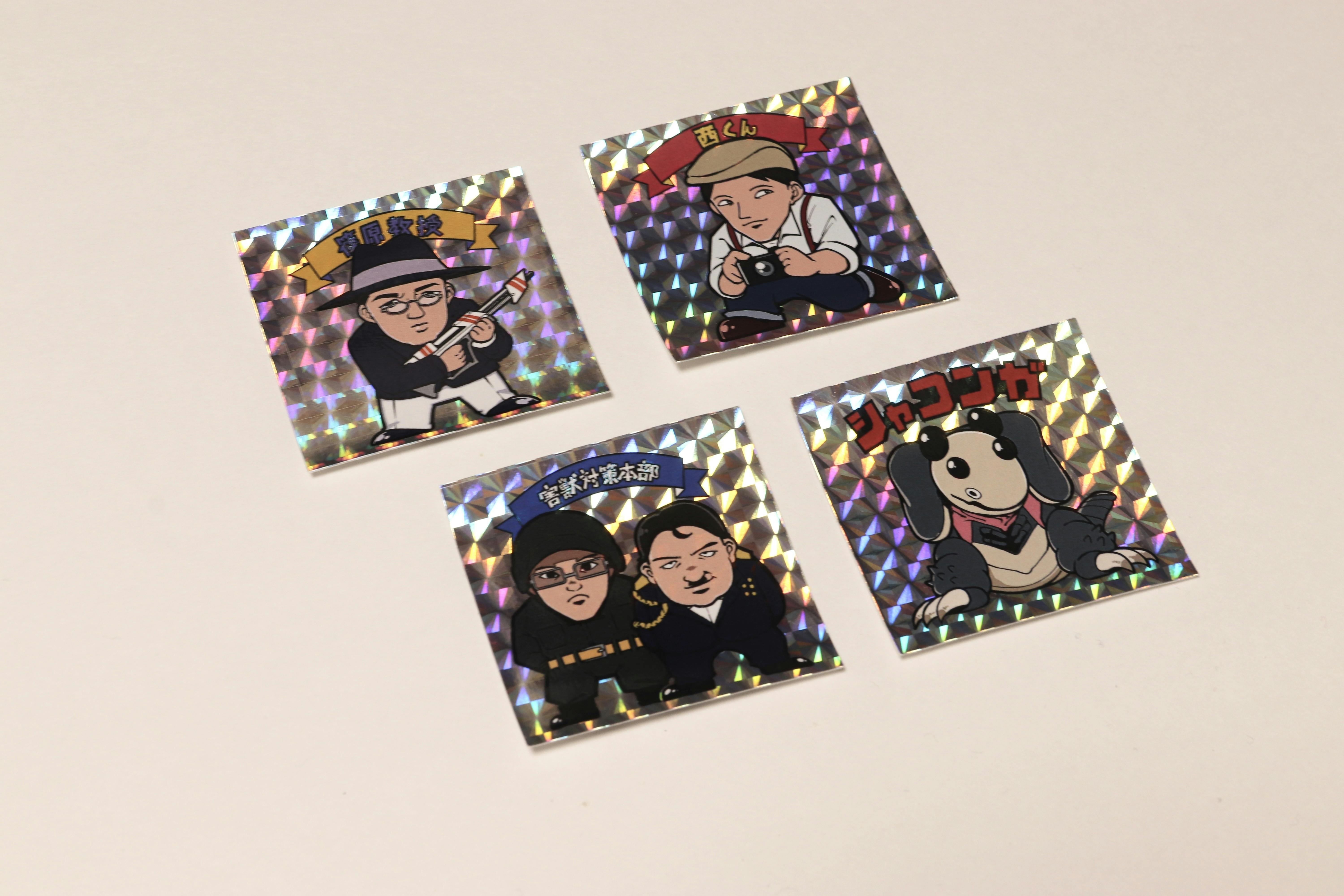 最近はビックリマンシール風にデザインを生成してくれるAIが登場しましたが、そんな今こそ手描きの味わいを感じてください。似顔絵もめちゃくちゃ似ててすごいです。