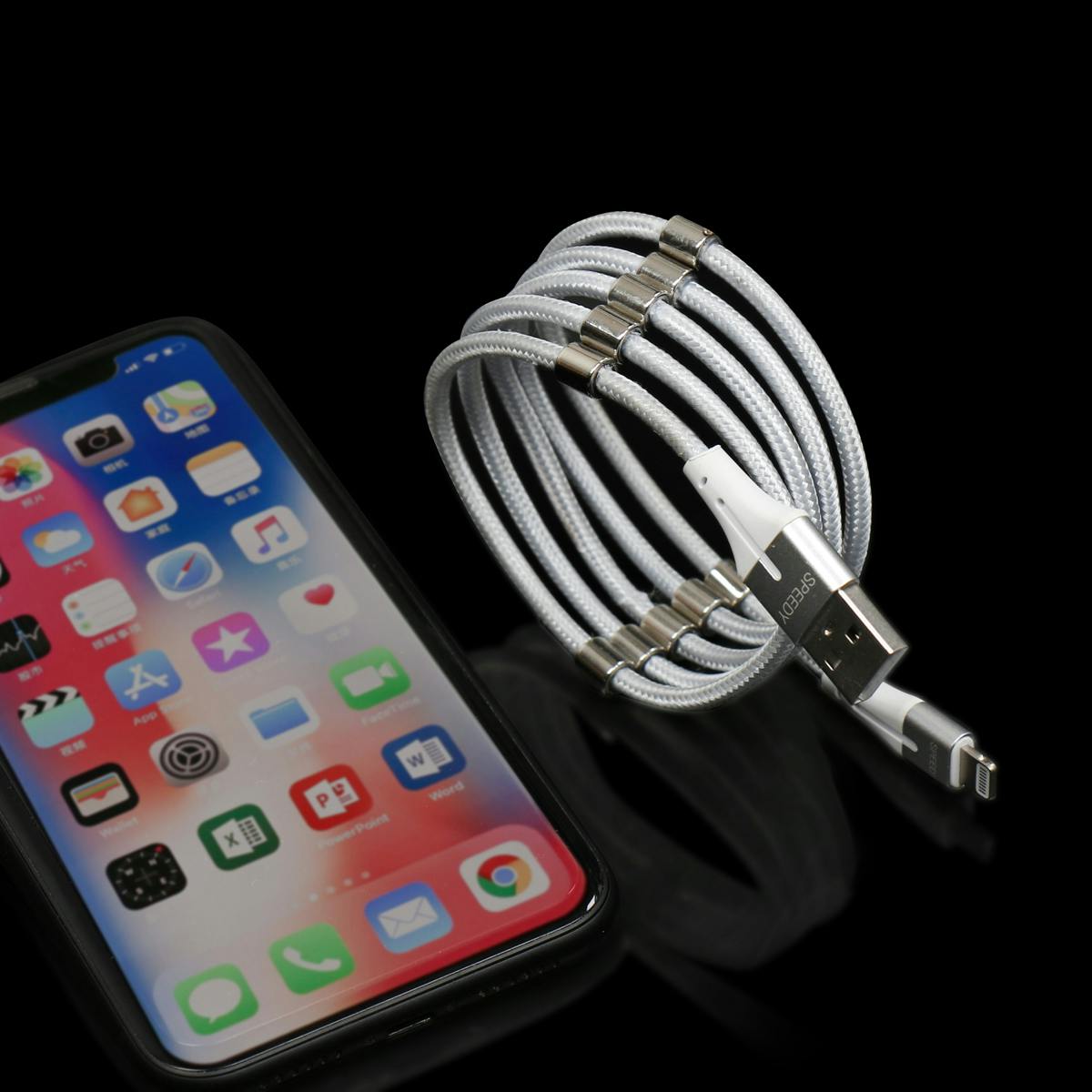 「SPEEDY」は、マグネットビーズがついているのでスッキリまとまります!ケーブルの良くあるごちゃごちゃ問題を解決します!強力なマグネットビーズは少しの衝撃でも崩れません。