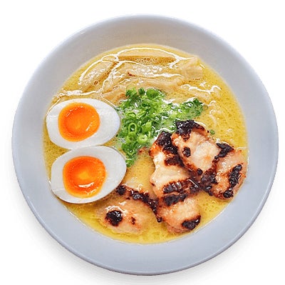 鶏ポタラーメンとは、鶏と10種類の野菜*で作るポタージュスープを使ったラーメン。化学調味料に頼らず、材料をたっぷりと使い旨味を作りだしているから、濃厚なのにさっぱりとした味わいが特徴です。また、世界中の人が宗教による制約なく食べられるラーメンです。