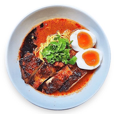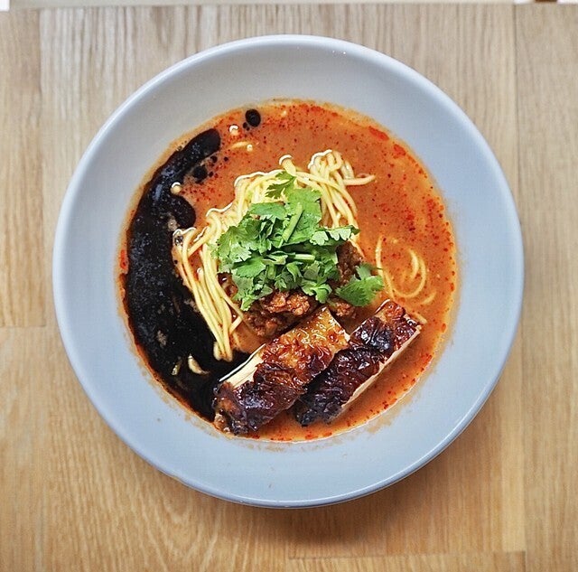 自家製ラー油がいい感じに辛みを与える。麺は中太玉子麺がスープによく絡みますよ。