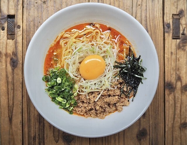 チリトマラーメンとは、鶏とトマト、アサリ、レンズ豆などが入った「チリトマ」スープをベースとしたラーメン。一杯で栄養満点になること、化学調味料に頼らずたっぷりの材料から旨みを引き出すことを大切にしています。こちらも麺を食べ終えた後はスープにチーズライスを入れてリゾットがおすすめです。