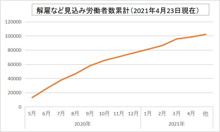 出展:厚生労働省「解雇など見込み労働者数累計」より