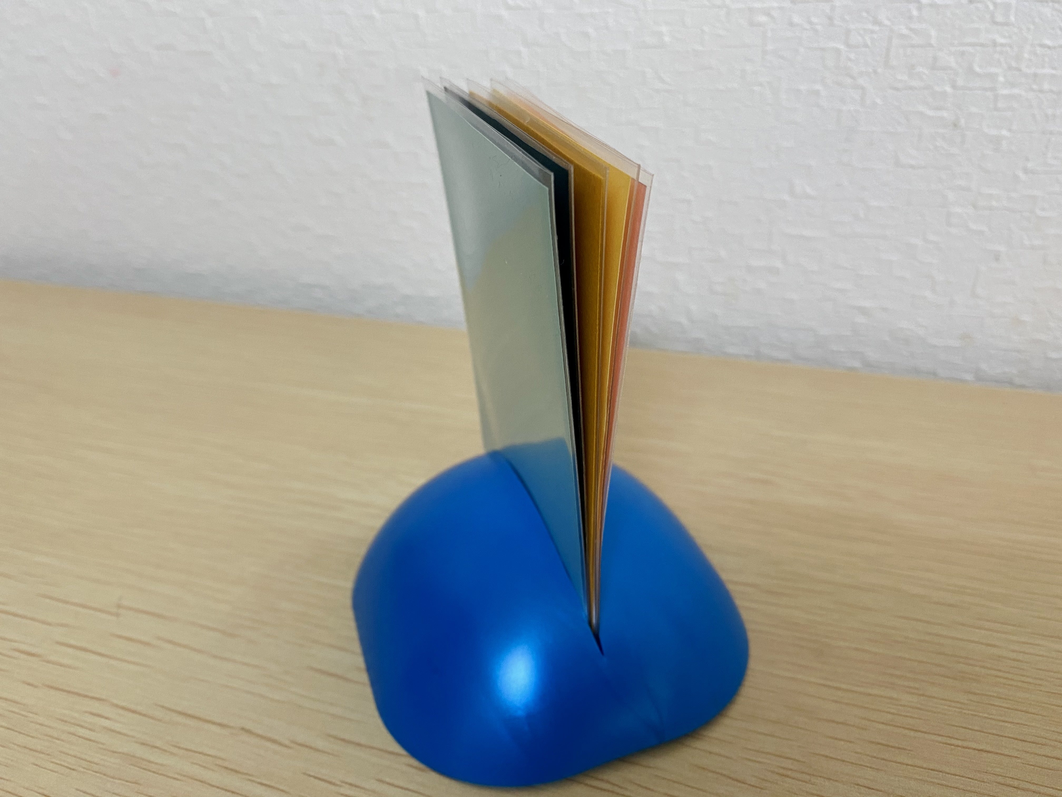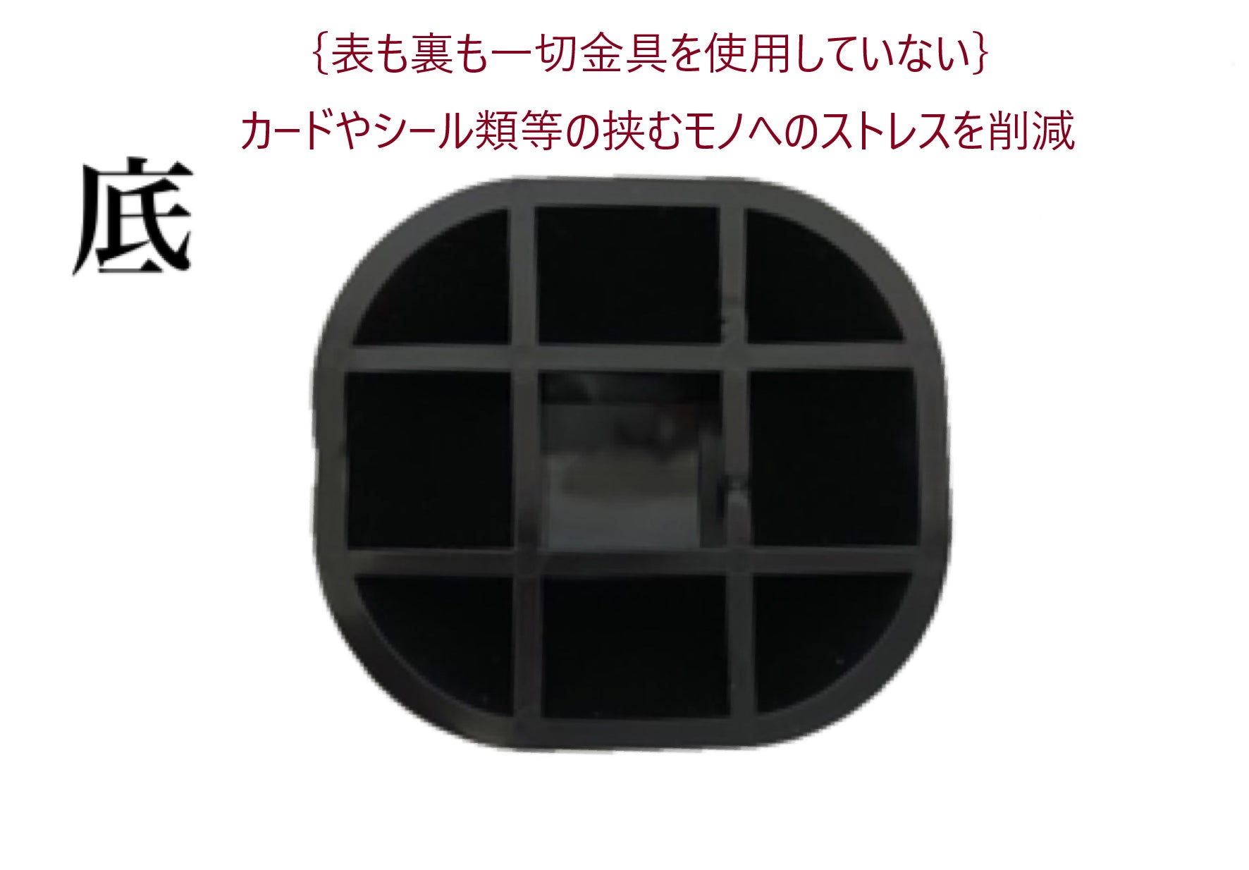 超極細スリット加工を施すことで、厚みの薄いカードやシール類をきちんと挟んで立たせる。