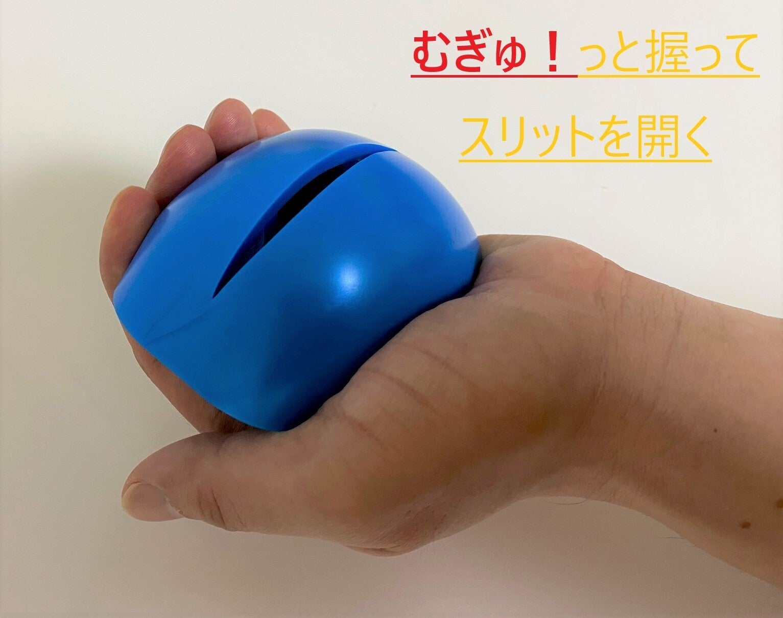②「むぎゅ!」と握ってスリットを開く